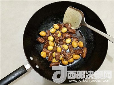 8.大概20分鐘后,放入食鹽,鵪鶉蛋繼續(xù)燒制。