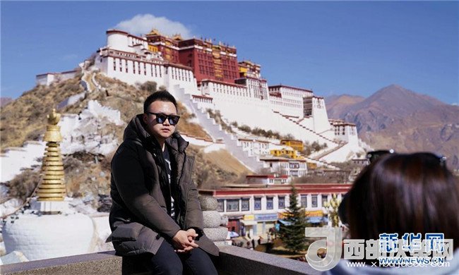 1月31日,一名游客在布達(dá)拉宮觀(guān)景臺(tái)上留影。
