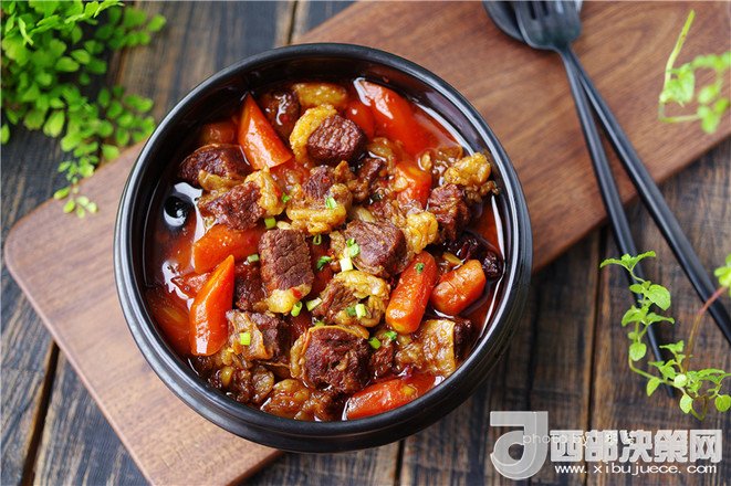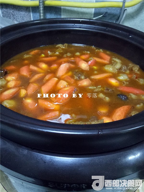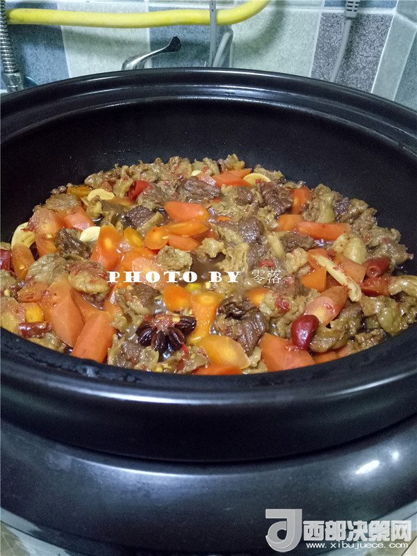 11.放入胡蘿卜;接通電源,選擇“紅燒牛羊”程序;口感選“標準”即可;