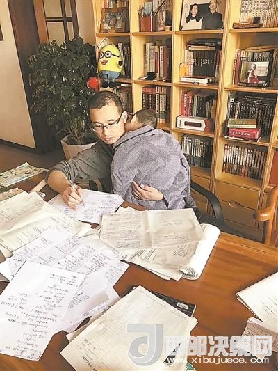 教師“奶爸” 一手閱卷一手抱娃