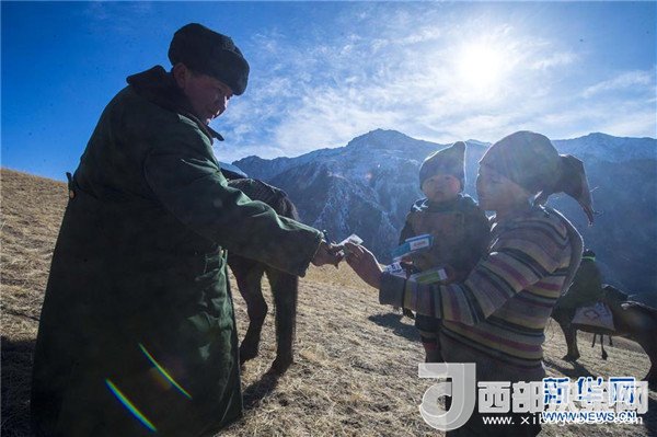 巡診隊醫(yī)生賽山在為牧民送藥(2017年12月17日攝)。