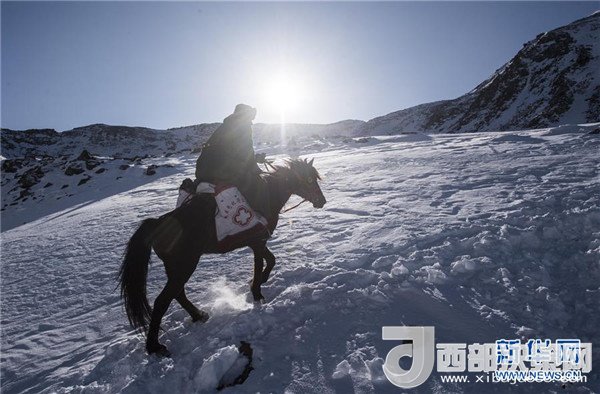 巡診隊醫(yī)生葉力夏提縱馬翻越喬拉克達坂(2017年12月15日攝)。