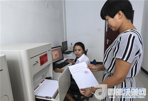 河北香河縣鉗屯鎮(zhèn)公章管理中心工作人員操作智能印控機為村民蓋章(2017年8月4日攝)。新華社記者李曉果攝