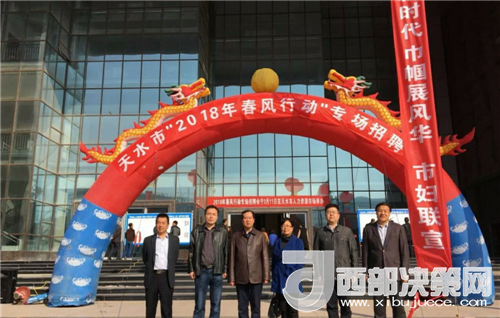 西部決策網(wǎng)——西部大開(kāi)發(fā)訊(帥華鋒 通訊員 馬存福 漆小燕)為全面貫徹黨的十九大精神,助推鄉(xiāng)村振興戰(zhàn)略,打好脫貧攻堅(jiān)戰(zhàn),由天水市人社局、市扶貧辦、市總工會(huì)、團(tuán)市委、市婦聯(lián)聯(lián)合舉辦的天水市“2018年春風(fēng)行動(dòng)”專(zhuān)場(chǎng)招聘會(huì)于3月11日在天水市人力資源市場(chǎng)舉行。
