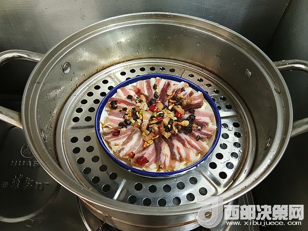 2、蒸制的時(shí)候,千張咸肉中可以加入少許水,我沒(méi)有加水,蒸出來(lái)稍稍有些干。