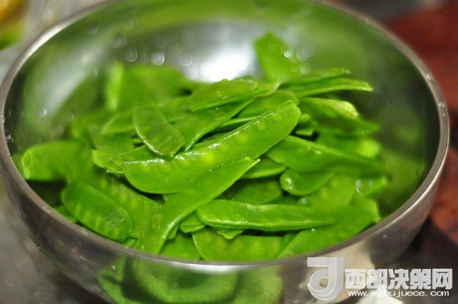 2.荷蘭豆去兩頭去筋洗凈 。