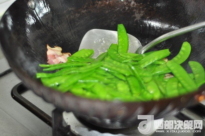 8.下入荷蘭豆煸炒。
