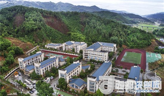 重建的木魚中學(xué)全貌(4月24日無(wú)人機(jī)拍攝)。