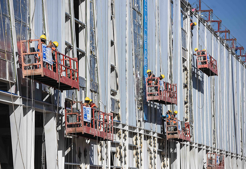 建設(shè)者在雄安市民服務(wù)中心項(xiàng)目現(xiàn)場施工(2月12日攝)。 新華社記者 申宏 攝