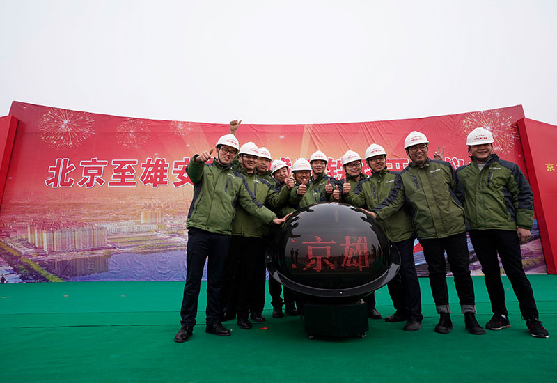 河北雄安新區(qū)首個(gè)重大交通項(xiàng)目北京至雄安城際鐵路(簡稱“京雄城際鐵路”)正式開工建設(shè),這是建設(shè)者在開工儀式現(xiàn)場合影留念(2月28日攝)。新華社記者 邢廣利 攝