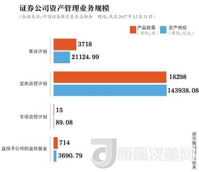 基金業(yè)協(xié)會數(shù)據(jù)顯示,截至2017年末,證券公司資產(chǎn)管理業(yè)務(wù)規(guī)模16.88萬億元,相比2017年一季度末18.77萬億元(最高值)減少1.89萬億元。其中定向資管計劃產(chǎn)品規(guī)模為14.39萬億元,相比2017年一季度末16.06萬億元下滑1.67萬億元。也就是說在券商資管規(guī)模縮減的1.89萬億中,8成左右是通道業(yè)務(wù)。