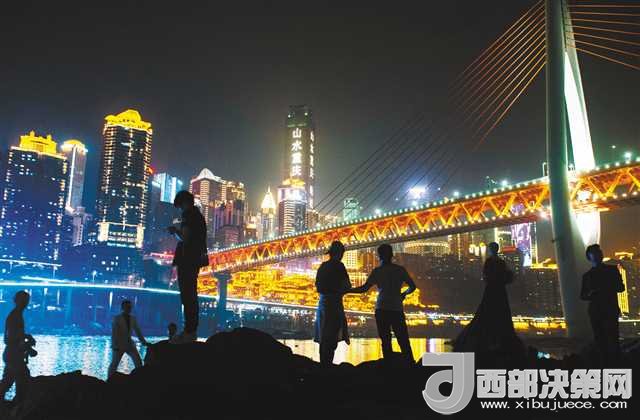 四月二十九日,江北區(qū)嘉陵江邊,不少外地游客在此拍攝“魔幻”重慶。 首席記者 崔力 攝(本報資料照片)