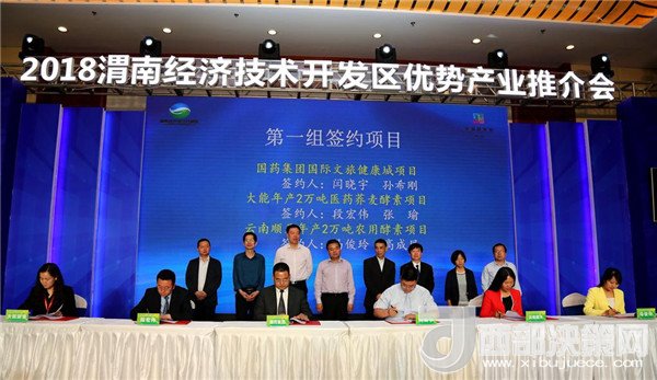 省質(zhì)監(jiān)局質(zhì)量監(jiān)督處處長(zhǎng)張泉生,市食藥局黨組書記、局長(zhǎng)王建軍,市商務(wù)局副局長(zhǎng)李爭(zhēng)良、市工信局副局長(zhǎng)孟宗憲,市外經(jīng)局副局長(zhǎng)郭向陽(yáng)、市質(zhì)監(jiān)局總工程師井西娥等省市領(lǐng)導(dǎo)出席推介會(huì)并見(jiàn)簽。經(jīng)開區(qū)黨群工作部部長(zhǎng)閆曉宇,管委會(huì)副主任段宏偉、馬俊玲上臺(tái)簽約。此次簽約的項(xiàng)目包括有總投資30億元的國(guó)藥健康文旅城項(xiàng)目,總投資1億元的大能年產(chǎn)2萬(wàn)噸醫(yī)藥蕎麥酵素項(xiàng)目,總投資3億元的陜西順天年2萬(wàn)噸農(nóng)用酵素項(xiàng)目;總投資1.2億元的年產(chǎn)1萬(wàn)噸功能性酵素和酵素飲品項(xiàng)目、總投資8000萬(wàn)元的陜西宜康神年產(chǎn)5000噸蘆薈酵素項(xiàng)目和總投資6000萬(wàn)元的陜西弘康生物科技股份有限公司特色植物提取項(xiàng)目;總投資8000萬(wàn)元的綠盛農(nóng)業(yè)科技有限責(zé)任公司農(nóng)用酵素運(yùn)營(yíng)示范中心項(xiàng)目、總投資5400萬(wàn)元的信德緣復(fù)合果蔬酵素項(xiàng)目和總投資6000萬(wàn)元的渭南市藥材公司年產(chǎn)1000噸葡萄酵素項(xiàng)目。