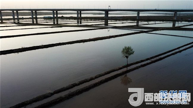 近日,寧夏黃河灌區(qū)百萬畝水稻種植區(qū)進入插秧季節(jié),黃河岸邊,塊塊稻田水滿欲溢,在初夏夕陽的映照下猶如明鏡,一派生機盎然的景象。