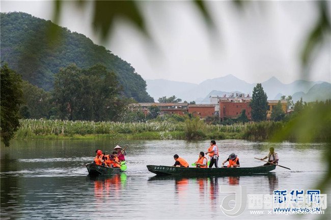 游人在普者黑國家濕地公園蕩舟休閑(5月26日攝)。