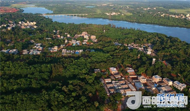 海口市瓊山區(qū)云龍鎮(zhèn)的村鎮(zhèn)掩映在綠樹和濕地中(5月30日無人機拍攝)。