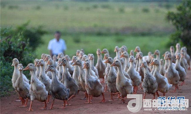 ??谑协偵絽^(qū)曲溪濕地,當(dāng)?shù)卮迕褚揽筐B(yǎng)鴨脫貧致富(5月30日攝)。