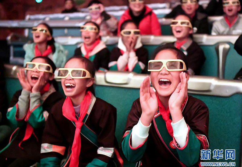 在廣西柳州市景行小學(xué)柳東校區(qū),來(lái)自三江侗族自治縣和融安縣大山里的留守兒童觀看3D動(dòng)畫片(1月4日攝)。當(dāng)日,柳州市舉行關(guān)愛(ài)留守兒童城市圓夢(mèng)活動(dòng)。新華社發(fā)(黎寒池 攝)