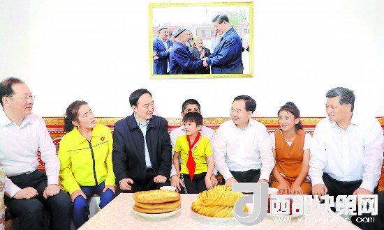 6月26日,自治區(qū)黨委書(shū)記、新疆生產(chǎn)建設(shè)兵團(tuán)黨委第一書(shū)記、第一政委陳全國(guó)陪同廣東省委書(shū)記李希,廣東省委副書(shū)記、省長(zhǎng)馬興瑞,來(lái)到疏附縣吾庫(kù)薩克鎮(zhèn)托萬(wàn)克吾庫(kù)薩克村看望慰問(wèn)貧困戶(hù)阿布都熱西提·麥麥提一家。崔志堅(jiān) 攝