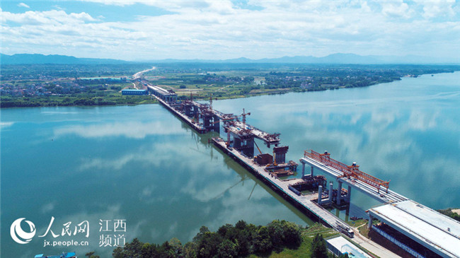 7月17日電17日上午,廣吉高速公路江西泰和北贛江特大橋正在進(jìn)行掛籃施工作業(yè),在藍(lán)天白云、綠水青山襯托下,顯得格外美麗壯觀(guān)。泰和北贛江特大橋位于江西省泰和縣萬(wàn)合鎮(zhèn),是廣吉高速公路唯一一座特大橋,是全線(xiàn)控制性工程,大橋總長(zhǎng)1075米,總投資近1.5億元。大橋自2016年11月開(kāi)工建設(shè)以來(lái),工程進(jìn)展順利,預(yù)計(jì)于今年底前建成合龍,為廣吉高速2019年1月如期建成通車(chē)奠定基礎(chǔ)。