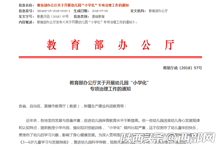 幼兒園“小學化”專項治理政策。