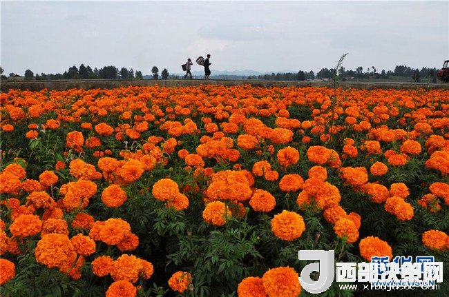 貴州畢節(jié)市威寧彝族回族苗族自治縣草海鎮(zhèn)萬壽菊基地一景(2014年8月17日攝)。新華社發(fā) 楊文斌 攝