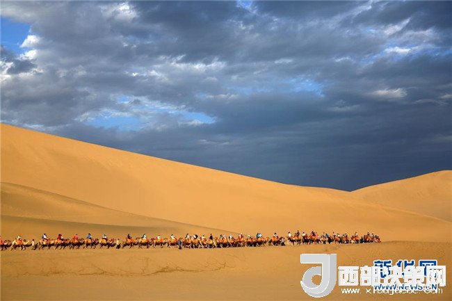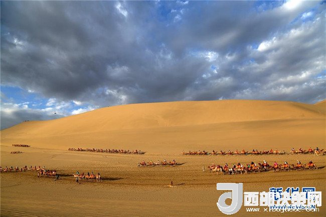 當(dāng)日,甘肅省敦煌市鳴沙山月牙泉景區(qū)云景如畫,美不勝收,游客徜徉其中,盡情欣賞大漠風(fēng)光。 新華社發(fā)(張曉亮 攝)