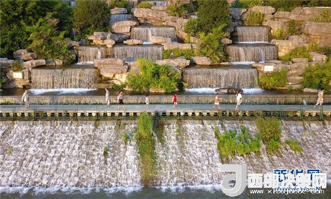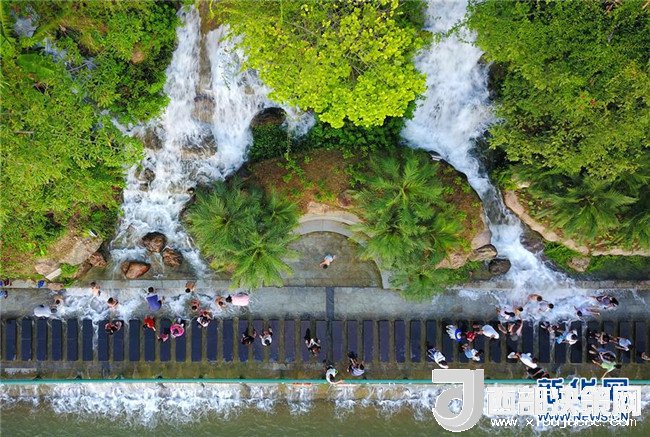 炎炎夏日,柳州市區(qū)柳江沿岸的人工瀑布群每天定時(shí)開(kāi)放,為市民送去清涼。新華社發(fā)(黎寒池 攝)