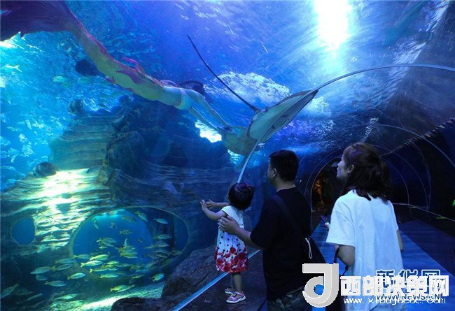 7月30日,家長(zhǎng)帶著孩子在貴陽(yáng)一家海洋世界觀看“美人魚(yú)”表演。