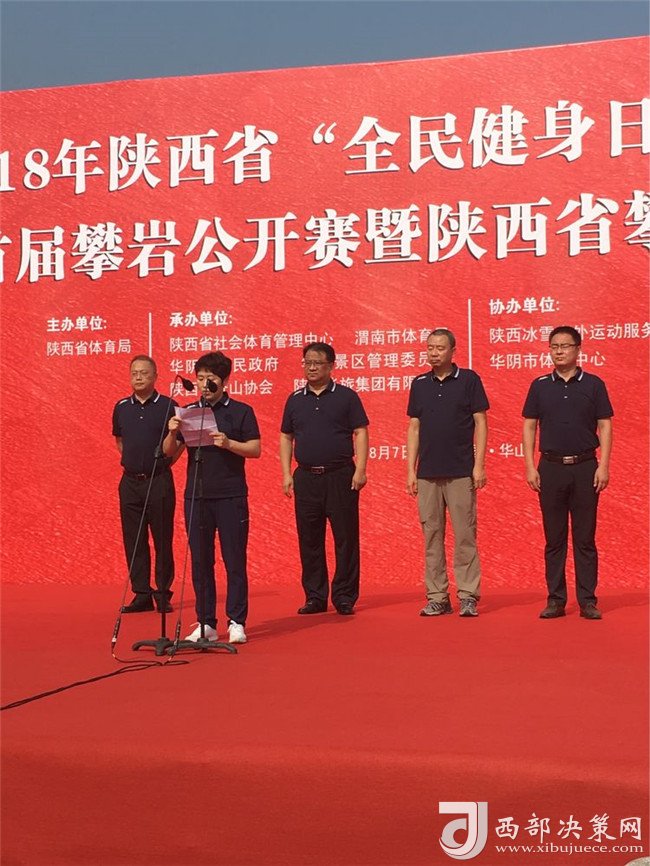 陜西省社會(huì)體育管理中心主任田凱、陜西省登山協(xié)會(huì)主席陳錚、渭南市體育局副局長王曉燕、陜西華山旅游集團(tuán)有限公司副總經(jīng)理趙江峰、華陰市體育中心主任潘飛出席本次活動(dòng)開幕式。