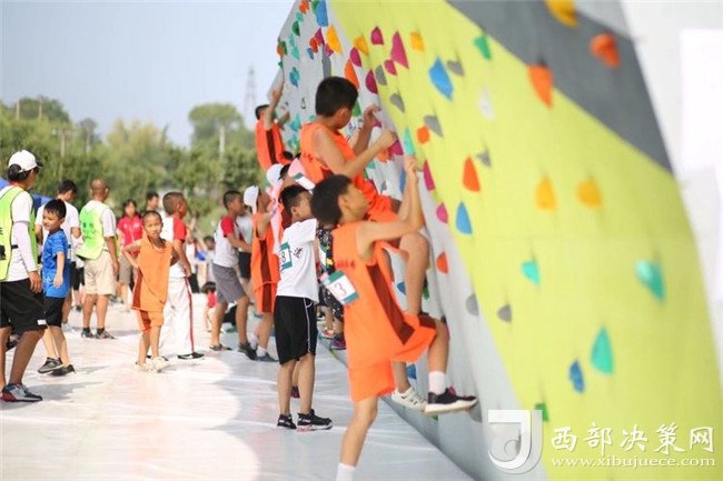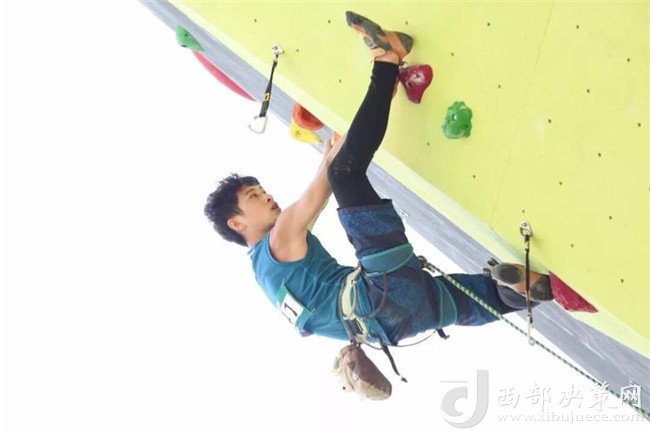 專業(yè)攀巖選手與資深攀巖愛好者在難度賽道進(jìn)行表演賽