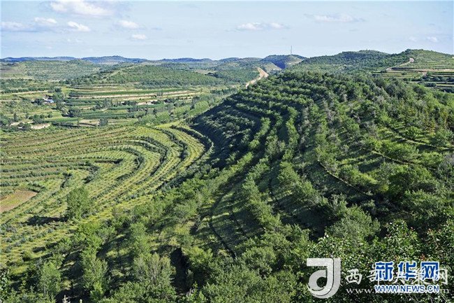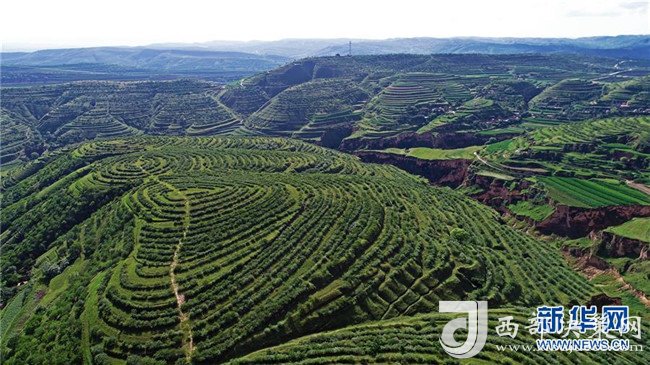 寧夏彭陽縣金雞坪梯田公園(7月16日無人機拍攝)。