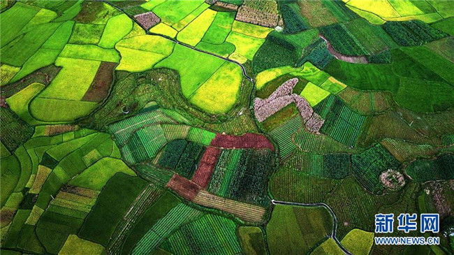 廣西隆林各族自治縣克長(zhǎng)鄉(xiāng)田園景色(9月1日無(wú)人機(jī)拍攝)。