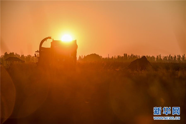 9月26日,收割機在新疆察布查爾錫伯自治縣種羊場的一處稻田收割水稻。眼下,地處新疆伊犁河谷的察布查爾錫伯自治縣約20萬畝水稻迎來收割季。當?shù)剞r(nóng)民搶抓農(nóng)時,忙碌在金色田園中。記者 胡虎虎 攝