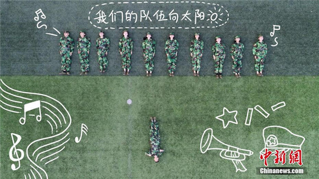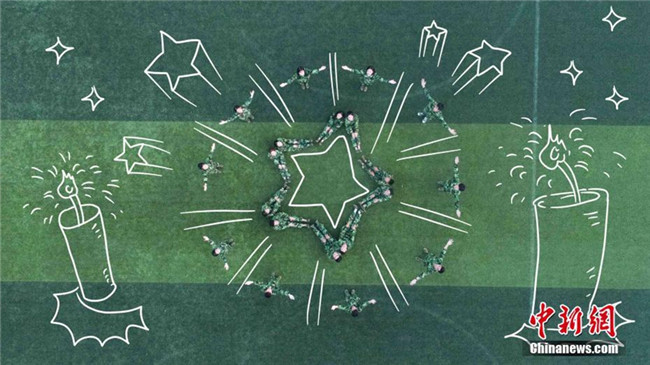 一提到軍訓(xùn),除了走方陣,站軍姿,你還能想到什么?近日,在福建師范大學(xué)協(xié)和學(xué)院2018級(jí)新生軍訓(xùn)場上,128位軍訓(xùn)新生以“閃閃紅星”“牢記八一”“嘹亮軍歌”等為題材拍攝出的一組航拍造型,并對(duì)照片進(jìn)行手繪加工,記錄下了新生們不一樣的軍訓(xùn)瞬間。陳可涵 攝 劉少航 繪