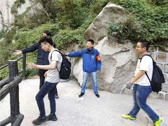 當(dāng)有行動(dòng)不便的游客游覽時(shí)、當(dāng)有游客的手機(jī)丟失時(shí)、當(dāng)游客的包掉到懸崖下時(shí),第一時(shí)間出現(xiàn)在游客身邊,及時(shí)為游客解決困難,此時(shí)他們的行動(dòng)是對(duì)游客最舒心的安慰。