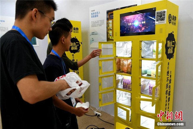 10月13日,第四屆中國“互聯(lián)網(wǎng)+”大學(xué)生創(chuàng)新創(chuàng)業(yè)大賽總決賽在廈門大學(xué)舉行。無人機(jī)、自助售飯機(jī)、人偶互動(dòng)、全息3D智能視頻、機(jī)器人輪椅、3D打印假肢手臂等大學(xué)生研發(fā)設(shè)計(jì)的產(chǎn)品亮相會(huì)場,以“90后”為主的創(chuàng)新創(chuàng)業(yè)生力軍已全面發(fā)力,釋放出“青年+創(chuàng)新創(chuàng)業(yè)”的無窮力量。圖為無人售飯機(jī)展示。中新社記者 王東明 攝