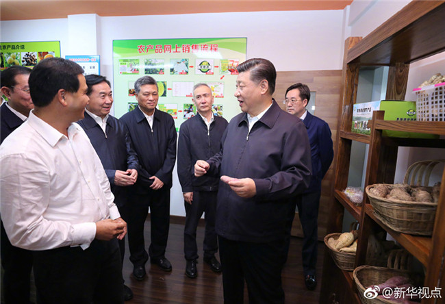 23日下午,習(xí)近平來(lái)到廣東省清遠(yuǎn)市所轄英德市電子商務(wù)產(chǎn)業(yè)園考察調(diào)研,了解當(dāng)?shù)匾噪娮由虅?wù)盤活特色產(chǎn)業(yè)、以產(chǎn)業(yè)發(fā)展推動(dòng)精準(zhǔn)扶貧情況。此前,他考察了珠海市并出席港珠澳大橋開通儀式,宣布大橋正式開通。(文字:張曉松 攝影:鞠鵬)