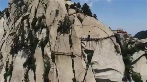 華山著名險(xiǎn)道之一“蒼龍嶺”,其位于救苦臺南、五云峰下,以其蒼黑色的外部和其似懸龍般的地勢而得名。其如履薄刃,絕壑千尺的地勢使得很多游客膽戰(zhàn)心驚,其中最著名的就是韓愈大哭投書求助的故事并引發(fā)了大量的相關(guān)典故和考證,而該處也因此留下了“韓退之投書處”的文化遺產(chǎn)。