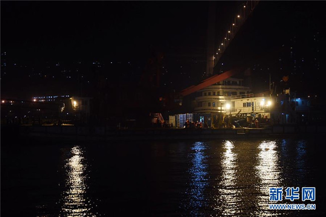 這是10月30日晚間拍攝的重慶萬(wàn)州公交車墜江事故救援現(xiàn)場(chǎng)。新華社記者王全超攝