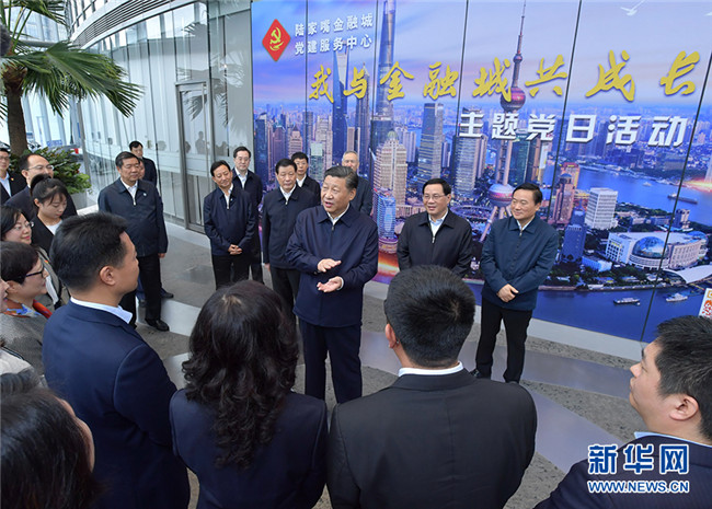 這是習(xí)近平在位于上海市浦東新區(qū)陸家嘴的上海中心大廈,視察陸家嘴金融城黨建服務(wù)中心,了解城市樓宇黨建工作情況。 新華社記者 謝環(huán)馳 攝