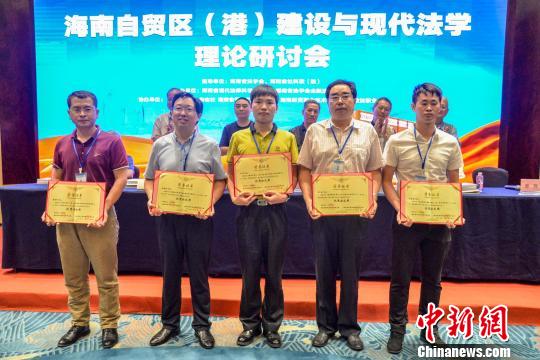圖為海南省法學(xué)會向海南自貿(mào)區(qū)(港)法治建設(shè)優(yōu)秀論文撰寫者頒獎?!『閳赠i 攝