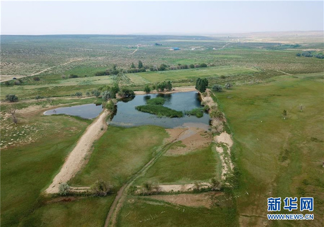 內(nèi)蒙古杭錦旗沙日召嘎查牧民白音道爾計(jì)治理過(guò)的庫(kù)布其沙漠(7月31日無(wú)人機(jī)拍攝)。新華社記者邢廣利攝