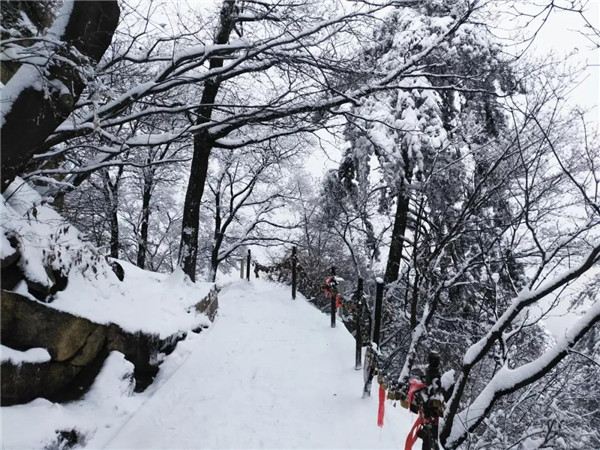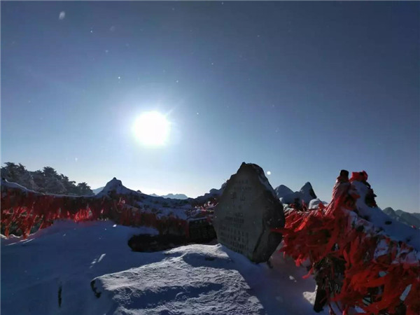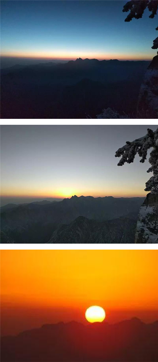 過后,又看到了下棋亭,長空棧道,華山松,西峰,南峰。想到金庸先生,想到“華山論劍”,“飛雪連天射白鹿,笑書神俠倚碧鴛”,伴隨了中國幾代人的武俠情懷。這里,金色的陽光,湛藍(lán)的天空,皚皚白雪;站在南峰仰天池上,左手秦嶺群山,右手八百里秦川,這就是華山之巔!