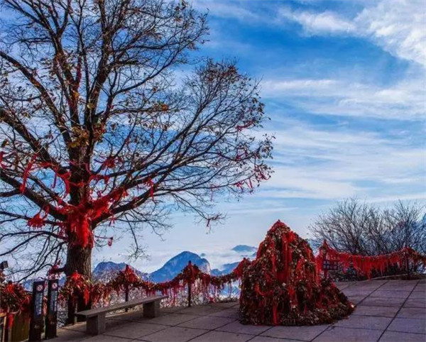 登西峰極目遠眺,四周群山起伏,云霞四披,周野屏開,黃渭曲流,置身其中若入仙鄉(xiāng)神府,萬種俗念,一掃而空。宋名隱士陳摶在他的《西峰》詩中就有"寄言嘉遁客,此處是仙鄉(xiāng)"的名句。西峰南崖有山脊與南峰相連,脊長300余米,石色蒼黛,形態(tài)好象一條屈縮的巨龍,人稱為屈嶺,也稱小蒼龍嶺,是華山著名的險道之一。
