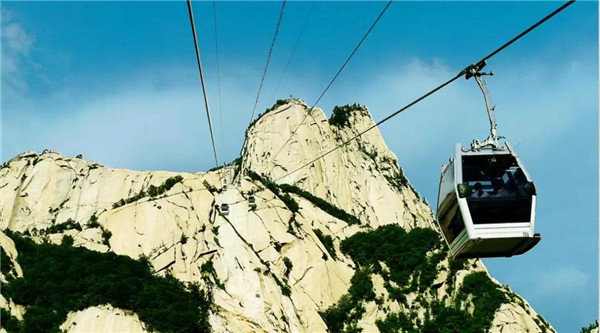 其實(shí),而今作為旅游勝地的華山,已不似古人所記所述,登山道路平整而闊,道旁鐵鏈?zhǔn)瘷谙嘧o(hù),已無(wú)危險(xiǎn)之虞,可謂“險(xiǎn)而無(wú)危”。如今,登頂華山的方式也已經(jīng)不止步行登山了,索道的建成使更多游人登頂華山的愿望成為現(xiàn)實(shí)。