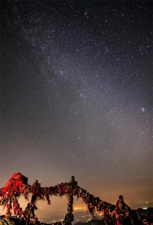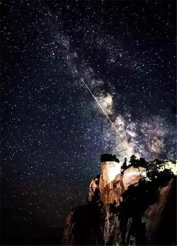 華山的月夜與星空交互輝映,佇立華山之巔,觀星河交匯,無(wú)際的銀河仿佛近在咫尺,在這里,你便被華山的夜色誘惑。