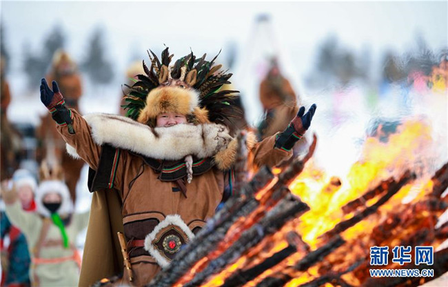 12月26日,民間藝人在“伊薩仁”開幕式上進(jìn)行民俗表演。 當(dāng)日,內(nèi)蒙古呼倫貝爾市第五屆鄂倫春冰雪“伊薩仁”在鄂倫春自治旗開幕。“伊薩仁”是鄂倫春語“集會”“聚會”的意思。此次“伊薩仁”期間,將舉行鄂倫春徒步林海穿越、汽車越野拉力賽、冰雪觀賞、雪上沖浪等活動,為游客帶來不一樣的冰雪體驗(yàn)。 新華社發(fā)(丁根厚 攝)