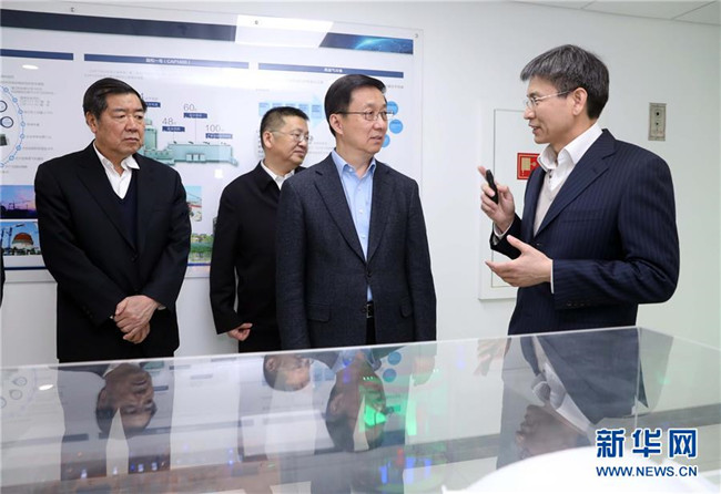 1月8日,中共中央政治局常委、國務院副總理韓正到國家能源局調(diào)研并主持召開座談會。這是韓正來到中國核電發(fā)展中心,了解核電發(fā)展現(xiàn)狀、自主創(chuàng)新和核心技術攻關、安全運行等情況。 新華社記者 劉衛(wèi)兵 攝