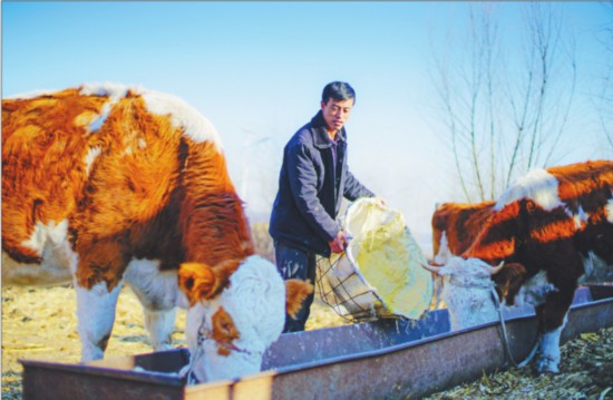 正當(dāng)路來寶一家深陷貧困泥淖,一籌莫展的時(shí)候,立志村村黨支部書記谷秀偉的一番話讓路來寶再次看到了希望。“俗話說‘母牛下母牛,三年五個(gè)頭’,都說養(yǎng)牛能掙錢,你要能吃得了那份苦,你就嘗試著養(yǎng)牛吧。沒技術(shù),我找人教你,沒資金我給你作保,幫你賒牛。”在谷秀偉的鼓勵(lì)下,路來寶這個(gè)養(yǎng)殖門外漢在自家小園搭起了簡(jiǎn)易牛舍,賒來的兩頭母牛也成了一家人脫貧的全部希望。